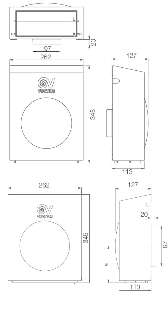 •Motore a 2 velocità dotato di cuscinetti a sfera e di termoprotettore. •Coperchio frontale in lamiera d’acciaio P04 verniciata con vernice polyestere a garanzia di elevata protezione nei confronti degli agenti atmosferici. •Flange porta-motore stampate in polipropilene (PP)caricato. •Il meccanismo di chiusura automatica della bocca di mandata, accoppiato alla griglia di protezione, previene i rischi di rientri d’aria e protegge dall’ingresso di corpi estranei. •Grado di Protezione: IPX5. •Classe di Isolamento: Cl. II