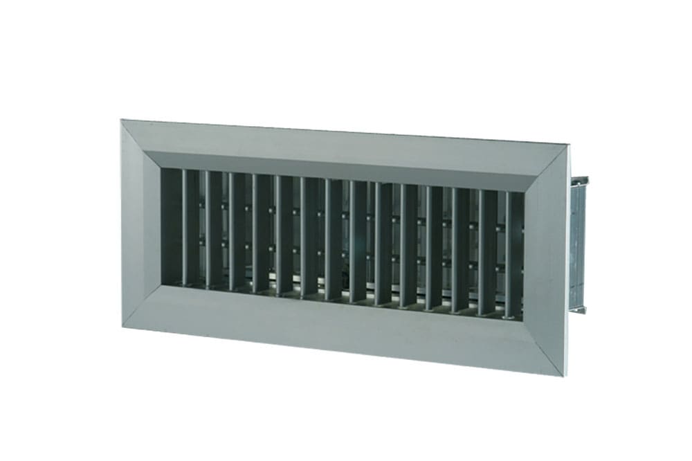 Bocchette di mandata/ripresa rettangolari con alette orizzontali fisse e alettature verticali mobili regolabili manualmente. Da applicare a condotti di ventilazione quadrati/rettangolari con relativi telai oppure su condotti tondi con plenum 300x150.