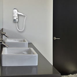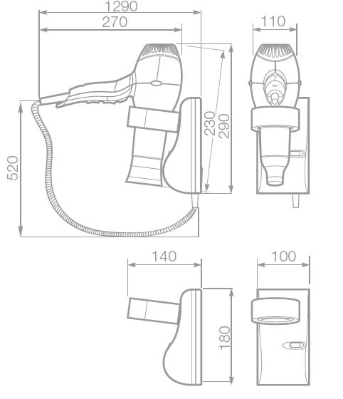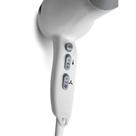• Asciugacapelli a pistola con supporto a parete.• Interruttore, integrato nel supporto a parete, per la disconnessione della rete elettrica.• Pistola erogatrice stampata in ABS autoestinguente V0.• Dotato di prese rasoio: 230V-50Hz, 120V-60Hz.• Resistenza elettrica protetta dalla sovratemperatura da limitatore termico a ripristino automatico.• Filtro metallico antipolvere a protezione della componentistica interna, garanzia di affidabilità e durata nel tempo.• Lunghezza filo da 600 mm a 2200 mm circa.• 2 velocità.• 2 potenze selezionabili (800/1600W).