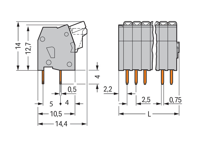 Winkel Leiterplatte/Leiteranschluss: