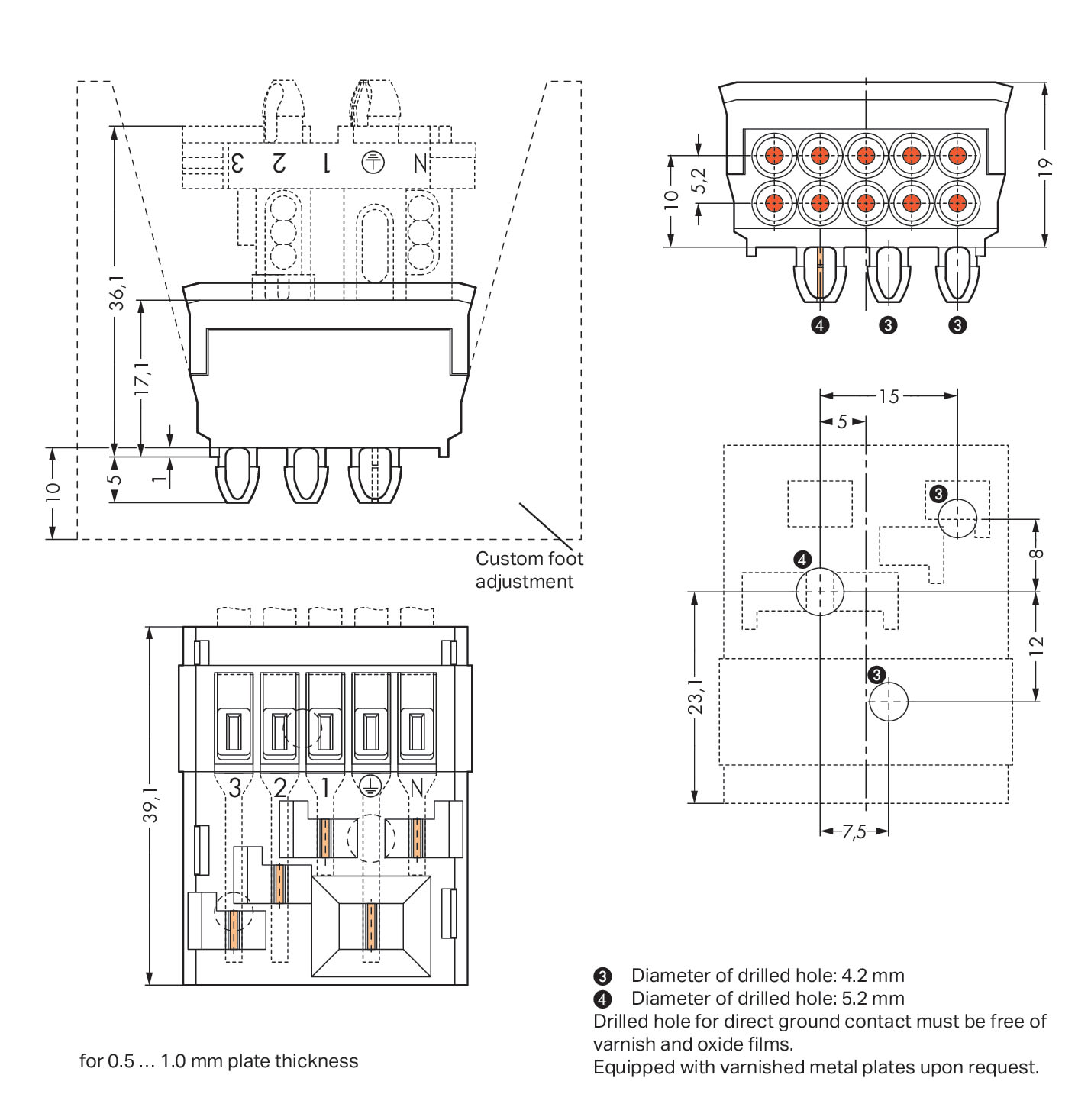 Leitungshalter; mit PE-Direktkontakt; mit Rastfüßen; 5-polig; 2,50 mm²; weiß