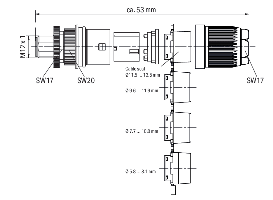 Konfekt. Steckverbinder; 5-pol. geschirmt; M12-St axial; Eindringtechnik