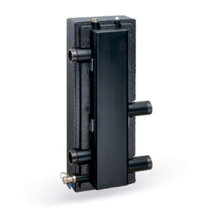 Separatore idraulico in acciaio per collettori di distribuzione Serie VB32 e HKV50 completo di coibentazione EPP, valvola di sfogo aria, rubinetto per carico/scarico circuito, staffe di fissaggio a muro e predisposizione per sonda di temperatura ad immersione (manicotto 1/2” F – Ø 6,5 mm).