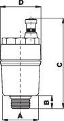 FLOATVENT. Valvola automatica sfogo aria verticale. Preguarnita O-ring. Adatta per installazione sugli attacchi di testa dei collettori complanari. Corpo in ottone CW617N. Pressione max. : 10 bar. Temperatura max. : 110 °C.