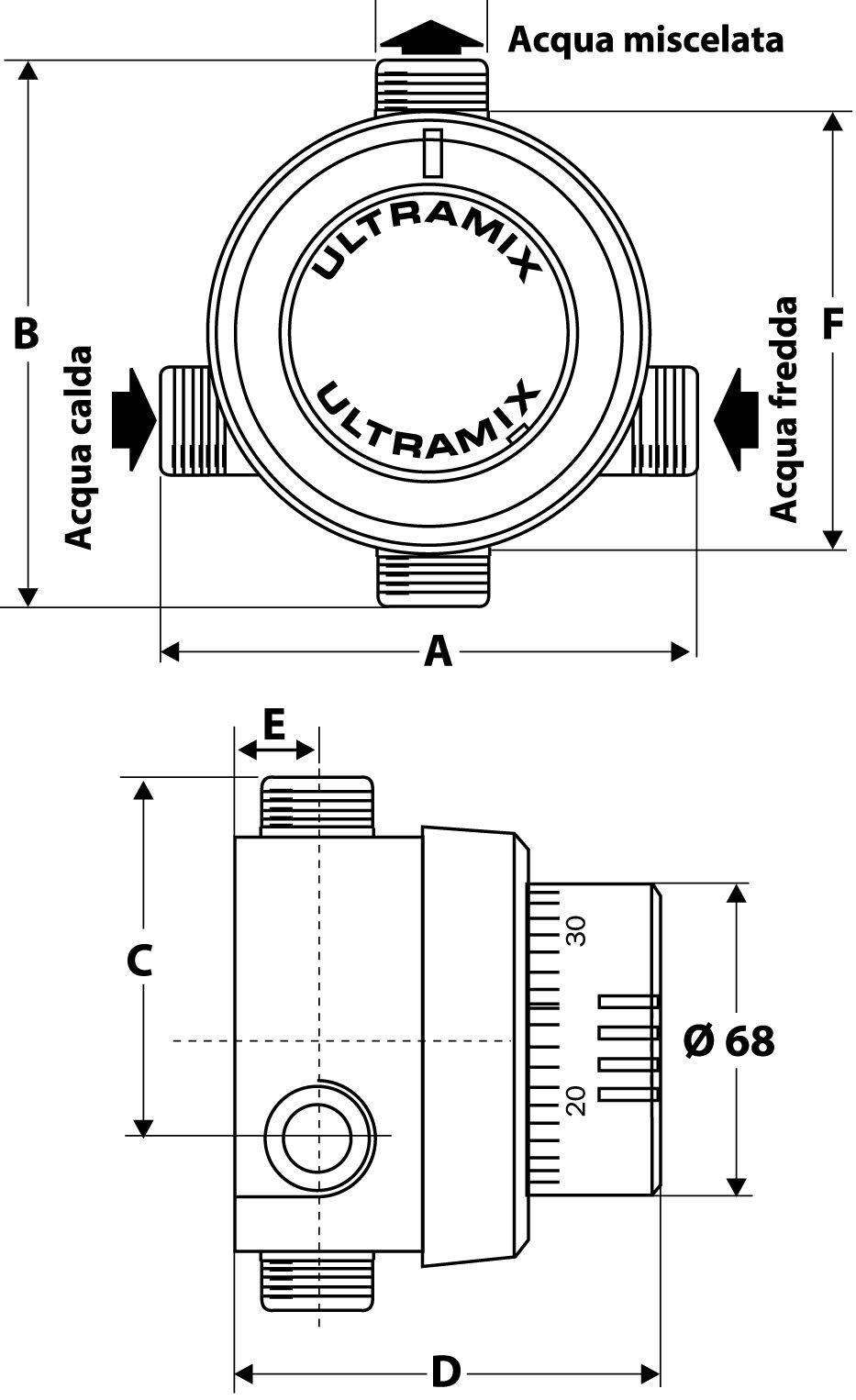 WATTS INDUSTRIES ITALIA SERIE TX90 MISCELATORE TERMOSTATICO CON MANOPOLA BLU ?3/4"M 3-80lt/min 30-70?C