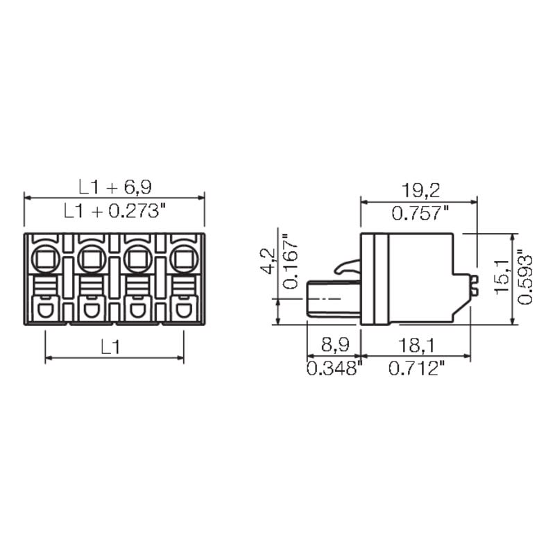 Rastermaß der Kontakte - 7.62 mm