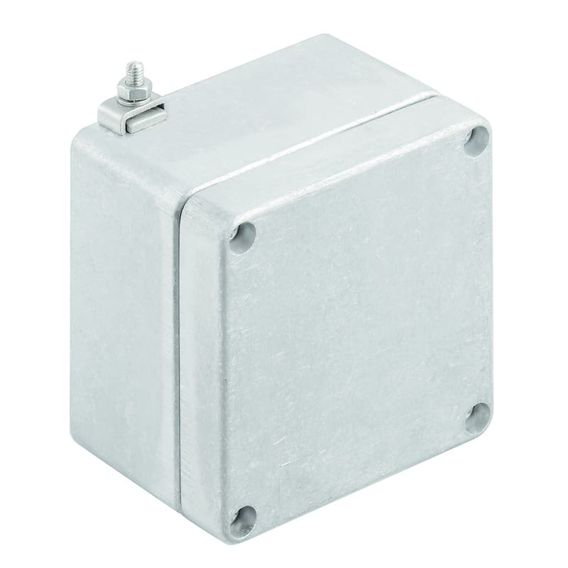 Custodia in metallo adatta all'uso in zone a rischio di esplosione. I fori per il montaggio sono posti all'esterno dell'area di tenuta stagna. Il montaggio a muro può essere realizzato utilizzando fori di montaggio o piedini di montaggio.