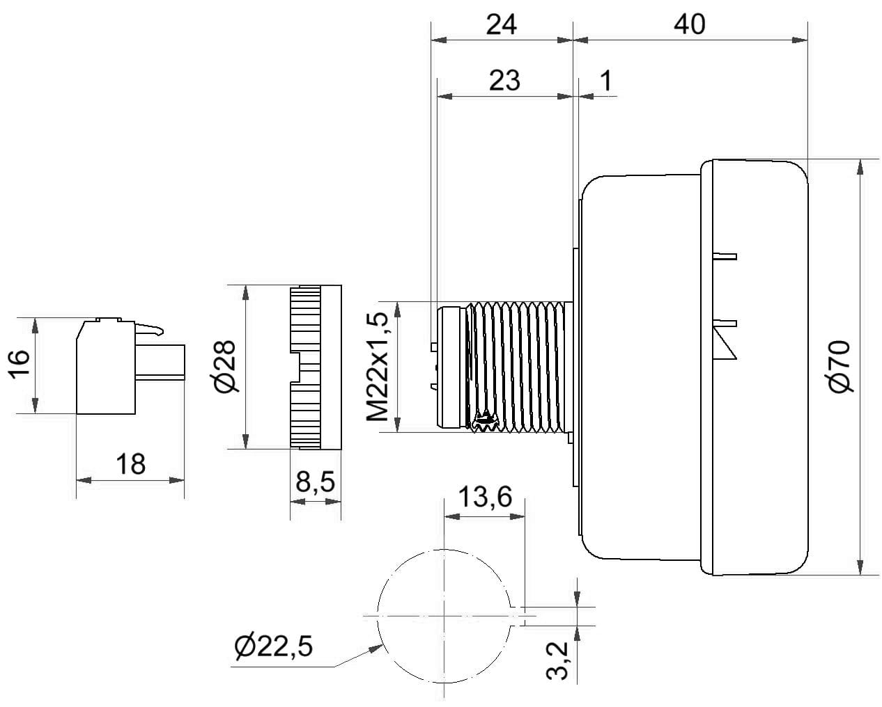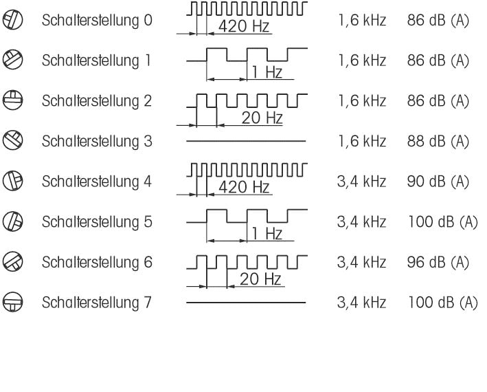 Potente sirena multitonale da incasso per la gamma di apparecchi di comando e segnalazione da 22,5 mm 8 tonalità regolabili Intensità sonora regolabile a seconda dell'impiego
