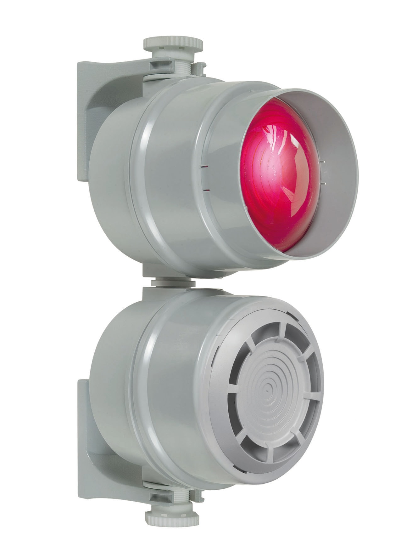 Mehrtonsirene WM 32 Töne 24VDC GY. 32 Töne für die unterschiedlichsten Einsatzfälle Lautstärke bis 110 dB einstellbar 3 Töne anwendungsspezifisch extern ansteuerbar Montagebügel für einfachste Kombination mit (LED-)Dauer-/Ampelleuchten 890 (Zubehör)