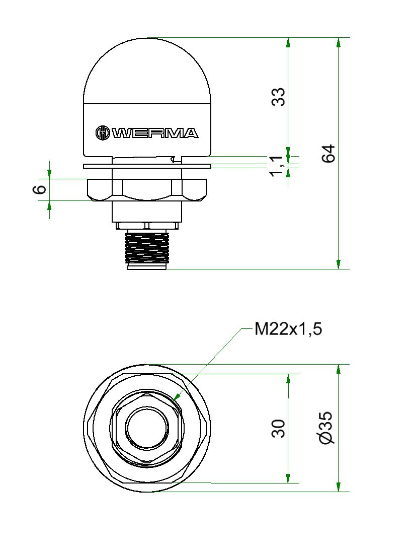 WERMA ITALIA SRL - WRA24142055 MC35 UL LAMPADA INCASSO 24V RGY M12 - 24142055