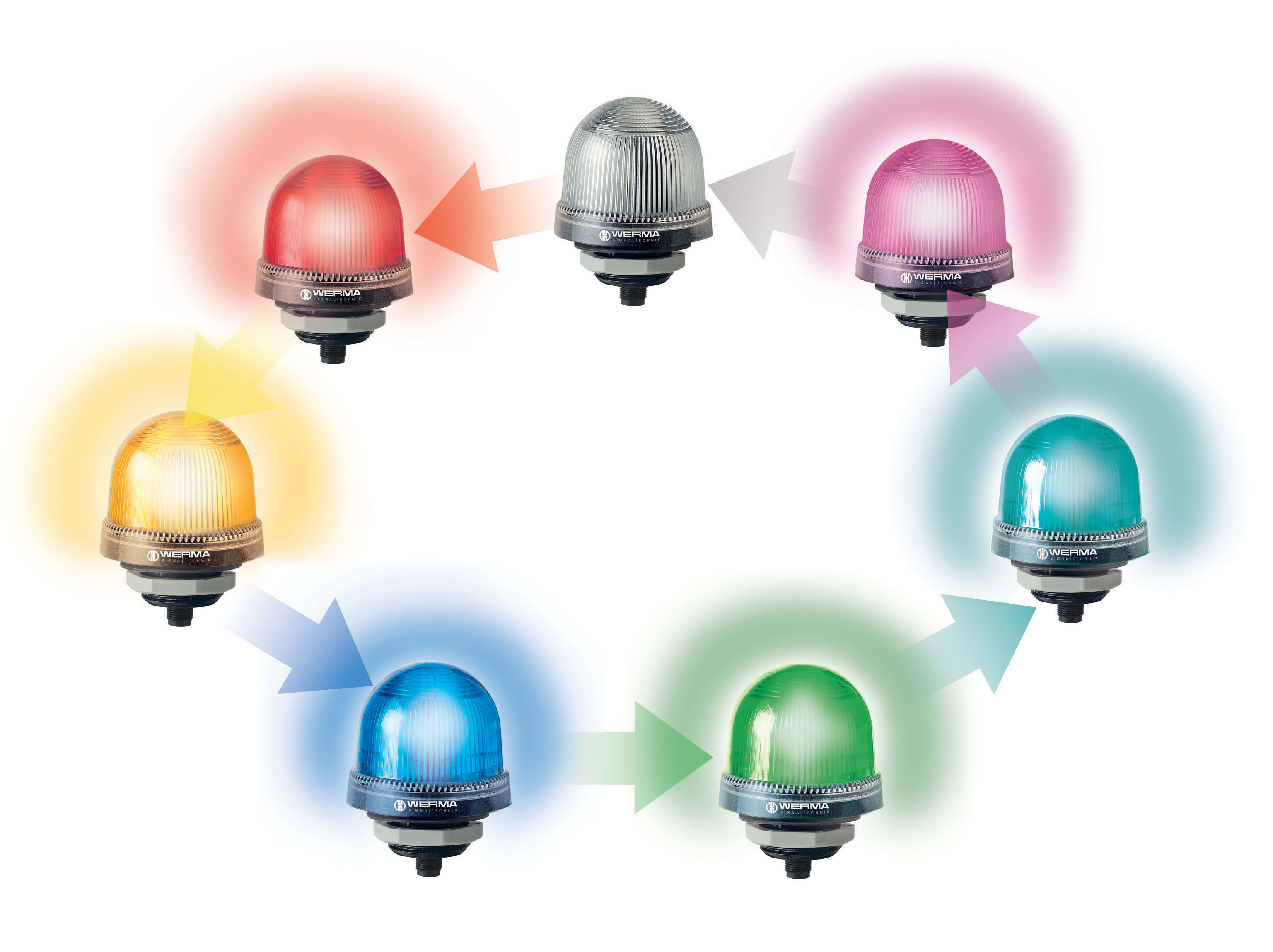 7 colori in un unico apparecchio Segnalazione di più stati possibile con un solo apparecchio di illuminazione Logica di controllo positiva e negativa Il controllo con codifica a bit consente la rappresentazione dei tre colori primari Con due sole uscite PLC