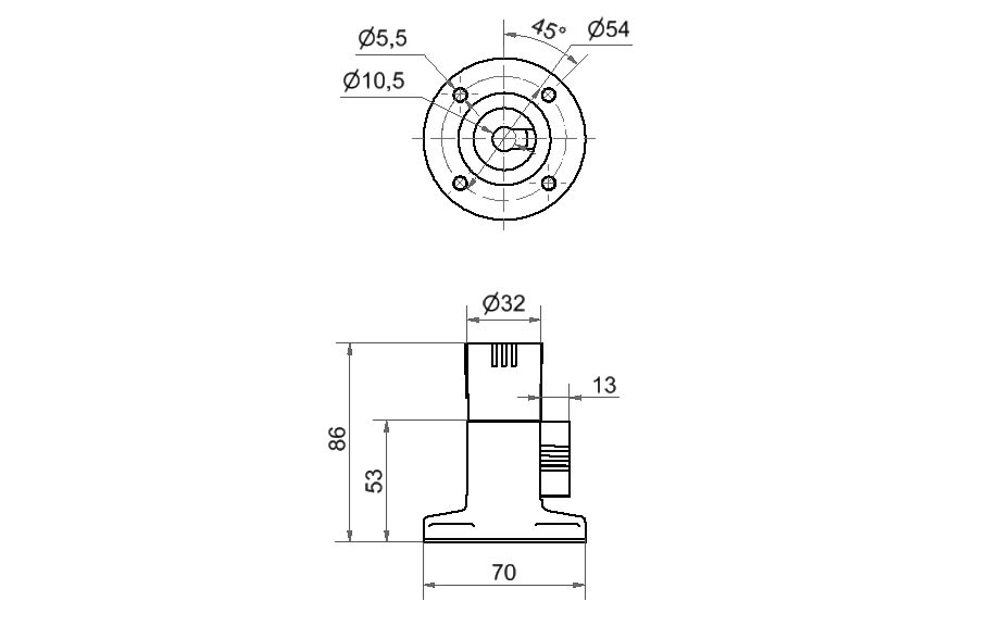 Knickfuß BWM BK. Signalsäule kann im angeschlossenen Zustand umgeklappt werden Einfachste Montage und Kabeleinführung bis Ø 8 mm Positionierung der Signalsäule ¿ horizontal oder vertikal