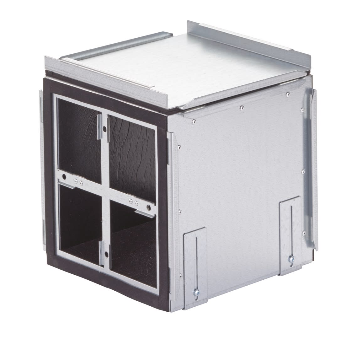 Silenziatore rettangolare dal design compatto, con uno speciale isolamento acustico, elevato abbattimento e ridotte perdite di carico. Separa e distribuisce i flussi d'aria dalla tubazione di centrale ai canali di distribuzione ComfoTube.