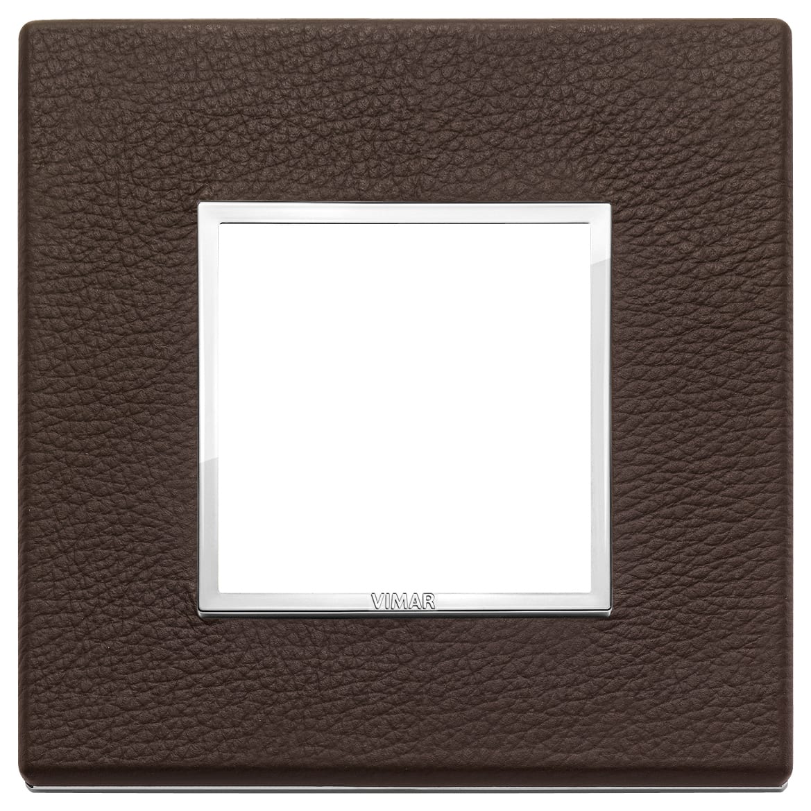 Placca 2 moduli, pelle naturale, tabacco.