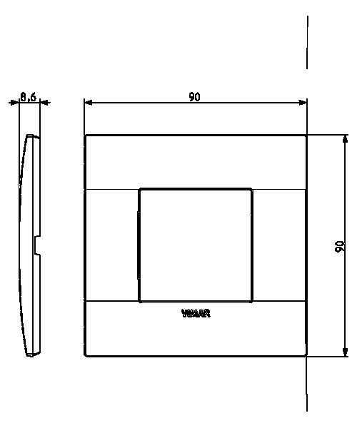 Placca Classic 2 moduli, tecnopolimero, oro matt. 90x90x8,6 mm.