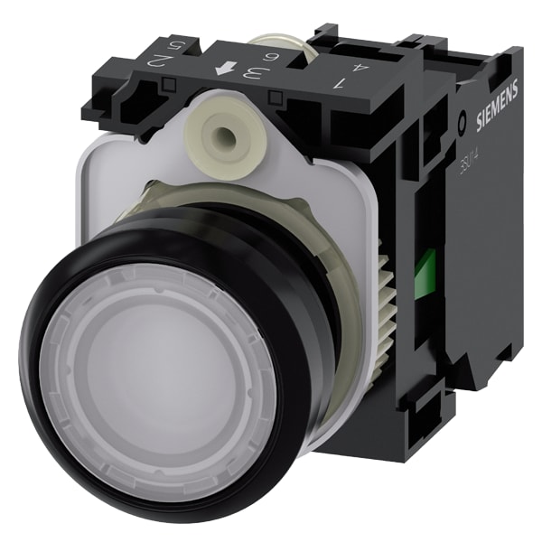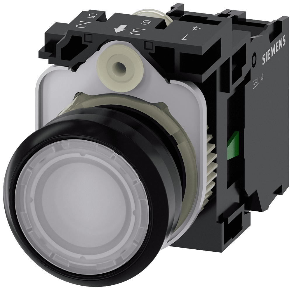 pulsante luminoso, 22 mm, rotondo, in plastica, bianco, bottone, piatto, ad impulso, con supporto, 1 NO, modulo LED con LED integrato AC/DC 24V, morsetto a vite Pulsanti luminosi SIRIUS ACT per la commutazione e il comando di utilizzatori elettrici. Siemens offre, sotto il nome commerciale SIRIUS ACT, un portfolio esclusivo di dispositivi di comando e segnalazione con omologazioni di prodotto per il mercato mondiale in tre moderne serie di design in robusto metallo puro e plastica pregiata.Linnovativo concetto di innesto a scatto semplifica talmente il montaggio che per eseguirlo basta una sola mano e non servono attrezzi speciali. Per i fori di montaggio sono sufficienti semplici fori non scanalati, essendo già integrata una protezione antirotazione al 100 %.Grazie al grado di protezione elevato i robusti apparecchi sono adatti allimpiego industriale e in ambiente esterno. È persino possibile la pulizia con getto ad alta pressione. Né polvere, né oli, né liscivia possono comprometterne il funzionamento affidabile.Oltre che con il cablaggio standard, gli apparecchi possono essere collegati al controllore anche tramite PROFINET, AS-Interface oppure IO-Link. Potete così ridurre il vostro onere di cablaggio, minimizzare le fonti di errore e ottenere maggiore flessibilità.Il configuratore online grafico supporta in modo confortevole la scelta e lordinazione di singoli apparecchi, pulsantiere e iscrizioni. È disponibile una documentazione completa (ad es. manuale, dati 3D, schema di collegamento). Esecuzioni fornibili: più colori, luminoso/non luminoso, con/senza iscrizione, comando permanente/ad impulso, diverse altezze di bottone e ghiera. Avvertenza: Apparecchio completo, fornitura incl. supporto e moduli. SIRIUS ACT - Performance in Action nel comando e nella segnalazione. Semplici da montare, altamente performanti, semplicemente perfetti.