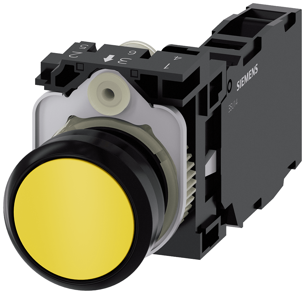 SIEMENS - SIE3SU11000AB301FA0 PULS. MOMENT.PLAST.GIALL 1NO+1NC VITE - 3SU11000AB301FA0