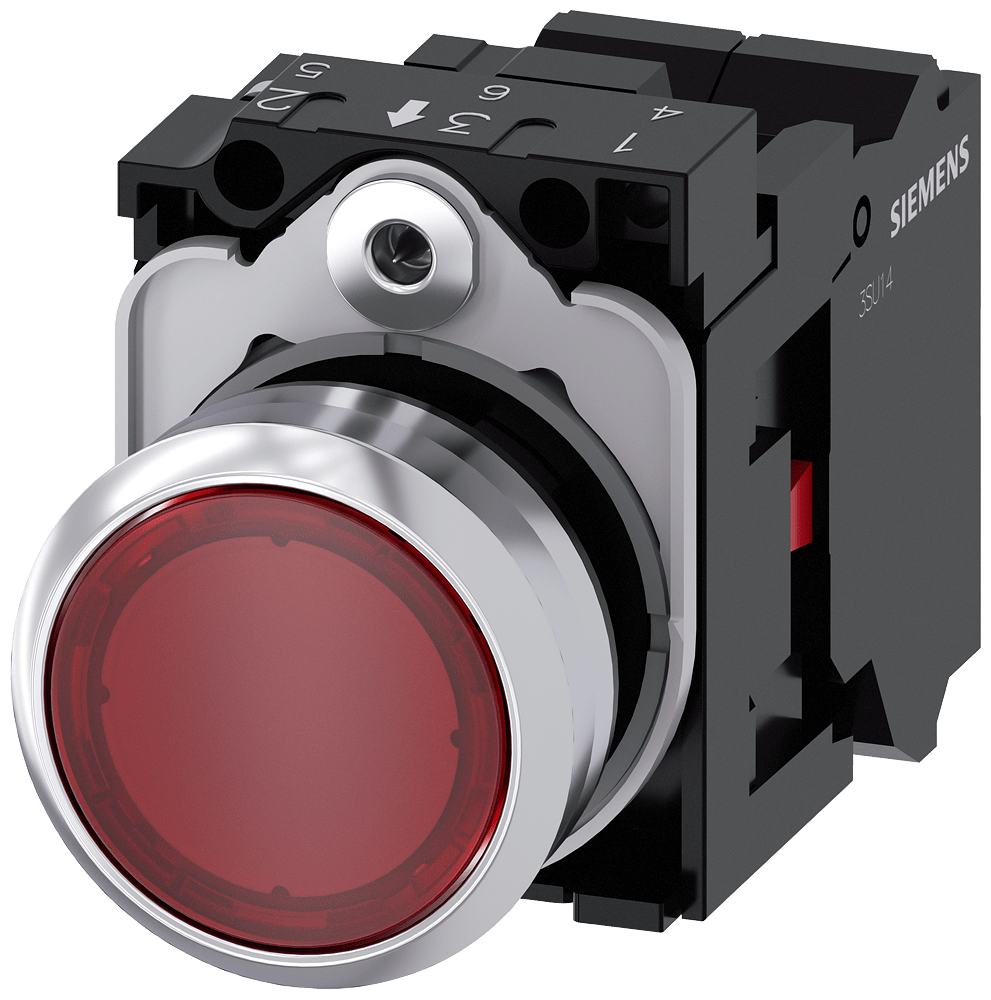 SIEMENS - SIE3SU11520AB203CA0 PULS.LUM.PIATTO ROS.MOLLA LED 24V UC 1NC - 3SU11520AB203CA0