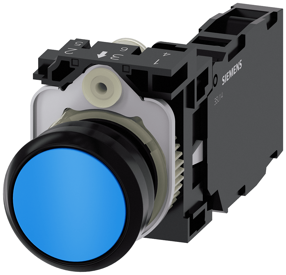 SIEMENS - SIE3SU11000AB501FA0 PULS.PIATTO MOMENT.PLAST.BLU 1NO+1NC VIT - 3SU11000AB501FA0