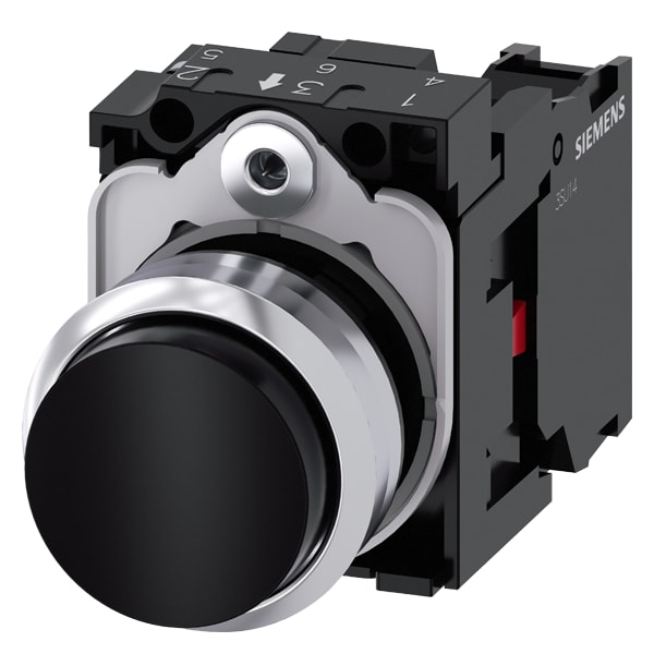 pulsante, 22 mm, rotondo, in metallo, lucido, nero, bottone, sporgente, ad impulso, con supporto, 1 NC, morsetto a vite Pulsante SIRIUS ACT per la commutazione e il comando di utilizzatori elettrici. Siemens offre, sotto il nome commerciale SIRIUS ACT, un portfolio esclusivo di dispositivi di comando e segnalazione con omologazioni di prodotto per il mercato mondiale in tre moderne serie di design in robusto metallo puro e plastica pregiata.Linnovativo concetto di innesto a scatto semplifica talmente il montaggio che per eseguirlo basta una sola mano e non servono attrezzi speciali. Per i fori di montaggio sono sufficienti semplici fori non scanalati, essendo già integrata una protezione antirotazione al 100 %.Grazie al grado di protezione elevato i robusti apparecchi sono adatti allimpiego industriale e in ambiente esterno. È persino possibile la pulizia con getto ad alta pressione. Né polvere, né oli, né liscivia possono comprometterne il funzionamento affidabile.Oltre che con il cablaggio standard, gli apparecchi possono essere collegati al controllore anche tramite PROFINET, AS-Interface oppure IO-Link. Potete così ridurre il vostro onere di cablaggio, minimizzare le fonti di errore e ottenere maggiore flessibilità.Il configuratore online grafico supporta in modo confortevole la scelta e lordinazione di singoli apparecchi, pulsantiere e iscrizioni. È disponibile una documentazione completa (ad es. manuale, dati 3D, schema di collegamento). Esecuzioni fornibili: più colori, luminoso/non luminoso, con/senza iscrizione, comando permanente/ad impulso, diverse altezze di bottone e ghiera. Avvertenza: Apparecchio completo, fornitura incl. supporto e moduli. SIRIUS ACT - Performance in Action nel comando e nella segnalazione. Semplici da montare, altamente performanti, semplicemente perfetti.