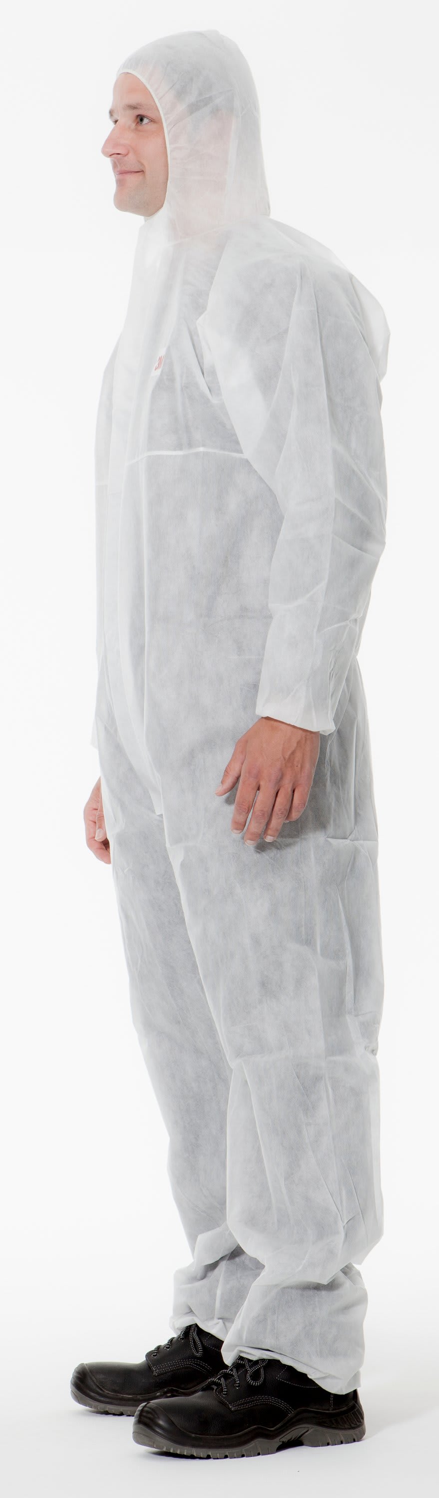L'indumento protettivo 3M™ 4500 è realizzato con un morbido polipropilene traspirante e offre a chi la indossa un'eccellente dissipazione del calore, massima freschezza e comfort. L'indumento protettivo offre protezione base dallo sporco, dalla polvere edai liquidi non pericolosi ed è certificata CE di categoria I.\nUtilizza l'indumento protettivo 3M™ 4500 per la protezione base contro lo sporco, la polvere e gli schizzi di sostanze liquide non pericolose, sul posto di lavoro o a casa. Questa tuta in polipropilene resistente offre un'eccellente copertura, con cappuccio elastico a 2 lembi e gli elastici in girovita e sulle caviglie che garantiscono una comoda vestibilità e una buona libertà di movimento. Il materiale morbido in polipropilene garantisce inoltre un'eccellente traspirabilità, per un comfort aggiuntivo durante il lavoro. Questo indumento è perfetto per i lavori più leggeri di pulizia e manutenzione, per visitatori di impianti di produzione, o per l'industria alimentare e mantiene l'utilizzatore pulito, garantendo anche l'igiene nel processo. La cerniera singola con patta di protezione offre maggiori comodità e protezione. Disponibile in blu o bianco, per la mappatura a colori delle zone, l'identificazione del lavoratore o per rendere menovisibile lo sporco.