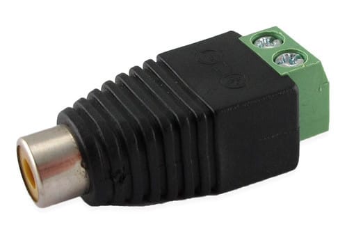 ** Caratteristiche Generali **Genere: PresaOrientamento: DrittoTipo Connettore A: RCAGenere A: PresaTipo Connettore A: Presa RCATipo Connettore B: Morsetto a viteTipo Connettore B: Morsetto a vite 2 poli** Caratteristiche Elettriche **Schermatura: si** Caratteristiche Meccaniche **Materiale Corpo: PVCMateriale Contatto: Ottone nichelatoLunghezza Cavetto: 2cm