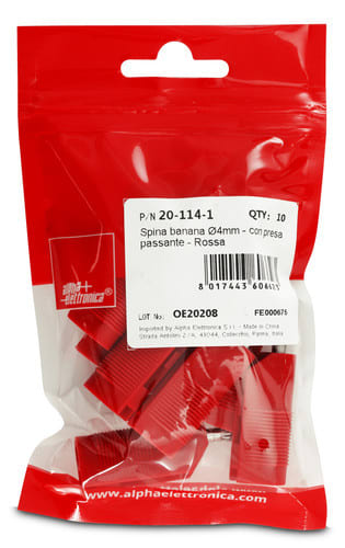ALPHA ELETTRONICA SR - ALP20-114-1 Spina banana ø4mm - con presa passante - Rossa