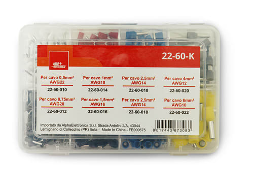 ALPHA ELETTRONICA SR - ALP22-60-K End-sleeve insulated terminals kit for 0,5 to 6,0 mm² cables (450pcs mixed) - 22-60-K