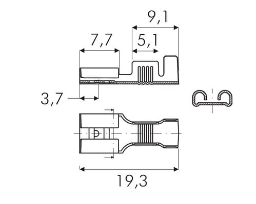 ø Isolante: 2,5 - 4,00mmSpessore maschio: 0,80mmSpessore materiale: 0,42** Caratteristiche Generali **Genere: PresaTipo Connettore: faston 6,35** Caratteristiche Meccaniche **Materiale Corpo: OttoneTipo contatto: faston 6.3mmTerminazione: a crimpareSezione conduttori: 1-2.5mm²