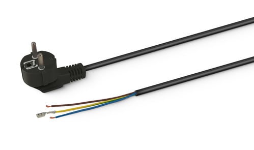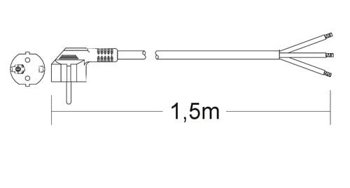 ** Caratteristiche **Colore cavo: NeroLunghezza Cavo: 1.5mFormazione cavo: 3 x 0.75mm²Tipo Cavo: TondoPortata: 10ATensione massima: 250VNome tecnico: H05W-F** Connettore A **Tipo Connettore A: Spina Schuko 90°** Connettore B **Tipo Connettore B: Cavo Spellato
