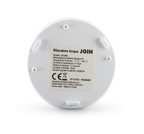 Dispositivo progettato per rilevare la presenza di perdite di acqua. Quando opportunamente posizionato, installato e mantenuto questo rivelatore provvederà ad avvisare della presenza di acqua tramite un forte allarme acustico. Integra un sensore con elevata sensibilità e prestazioni stabili. Grazie alle dimensioni ridotte può essere facilmente installato in prossimità di elettrodomestici come lavatrici e lavastoviglie.** Caratteristiche Generali **Principio di funzionamento: SondaRilevazione: Acqua dolceColore: BiancoSoglie d'intervento allarme: Se le 3 sonde entrano in contatto con acqua per 7SDurata sensore: 10 anniDurata batterie: 1 annoSensore sostituibile: NoIndicazione ottica: NoIndicazione acustica: SiMinimo livello sonoro: 85dBADisplay: NoContenuto confezione: Manuale, Rilevatore** Caratteristiche Elettriche **Corrente di quiescenza: