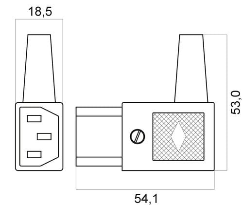 ** Caratteristiche Generali **Genere: PresaNorma di riferimento: EN 60320Foglio tecnico: C13Orientamento: 90°Qualità: HQ** Caratteristiche Elettriche **Corrente max: 10ATensione max: 250V** Caratteristiche Meccaniche **Materiale Corpo: Termoplastico rinforzato con fibra di vetroMateriale Contatto: Lega di rameTipo contatto: a viteMontaggio connettore: volante** Caratteristiche Termiche **Temperatura di lavoro: 0/70°C