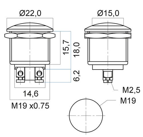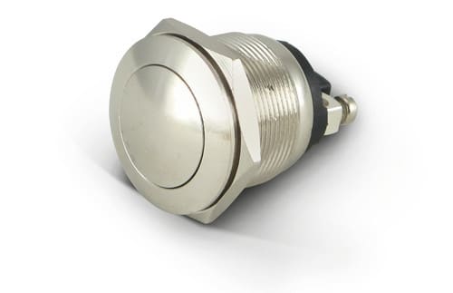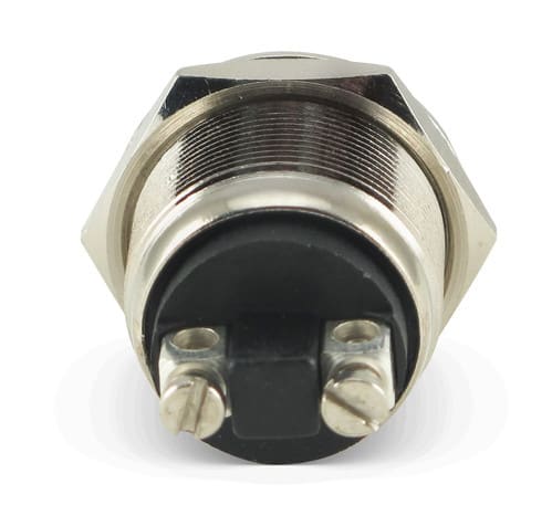 ** Caratteristiche Generali **Attuatore: Pulsante antivandaloSerie: AntivandaloForma dell'attuatore: ConvessoSerigrafia: NessunaLuminoso: noColore: MetalloMateriale attuatore: Ottone nichelatoTipi contatti: SPSTPortata: 2A@250Vac, 4A@125VacN. poli: 1Stato dei contatti: OFF/(ON) - N.A.Tipo terminale: viteN. terminali: 2Montaggio: Pannello con dadoForo fissaggio: ø19mmNote aggiuntive: antivandalo a cupolaGrado di protezione: IP65Temperatura di lavoro: -20 / 55°C