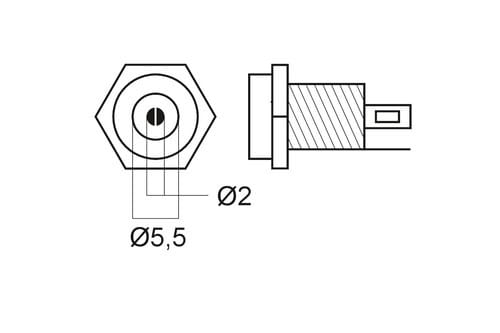 ** Caratteristiche Generali **Genere: Presa** Caratteristiche Meccaniche **Materiale Corpo: Ottone nichelatoMateriale Contatto: Ottone nichelatoTipo contatto: a saldareMontaggio connettore: pannelloDiametro Esterno: 5.5mmDiametro Interno: 2.1mm