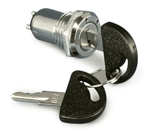 ** Caratteristiche Generali **Attuatore: ChiaveForma dell'attuatore: Piatto, RotondoSerigrafia: NessunaLuminoso: noMateriale attuatore: Ottone nichelatoTipi contatti: SPSTPortata: 0.2A@125N. poli: 1Stato dei contatti: ON/OFFTipo terminale: a saldareN. terminali: 2Montaggio: Pannello con dadoForo fissaggio: ø16mmDieci diverse combinazioni.Chiavi di ricambio non gestite.E' possibile rimuovere la chiave in entrambi gli stati dell'interruttore.