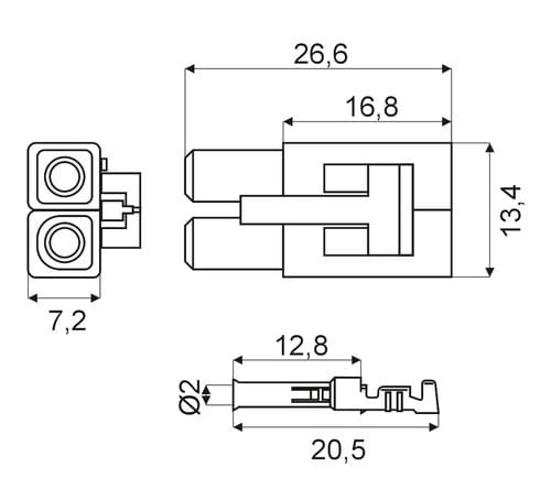 ** Caratteristiche Generali **Genere Corpo: MaschioGenere Contatto: Femmina** Caratteristiche Meccaniche **Materiale Corpo: Nylon 6Materiale Contatto: Ottone stagnatoTipo contatto: a crimpareMontaggio connettore: volante