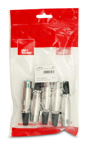 ** Caratteristiche Generali **Genere: PresaTipo Connettore: XLROrientamento: DrittoNr. Poli: 5Adatto per: 40-65** Caratteristiche Meccaniche **Materiale Corpo: Ottone nichelatoMateriale Contatto: Ottone nichelatoTipo contatto: a saldareMontaggio connettore: volante