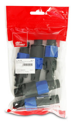 ** Caratteristiche Generali **Genere: SpinaTipo Connettore: SpeakONColore: NeroOrientamento: DrittoNr. Poli: 4** Caratteristiche Meccaniche **Tipo contatto: a viteMontaggio connettore: volanteDiametro cavo max: 15mm