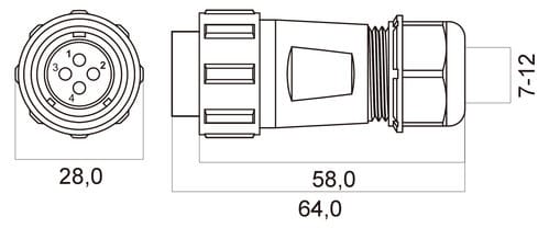 ** Caratteristiche Generali **Genere: SpinaOrientamento: DrittoNr. Poli: 4Serie Fornitore: SP21** Caratteristiche Elettriche **Corrente max: 30ATensione max: 500V** Caratteristiche Meccaniche **Materiale Corpo: NylonMateriale Contatto: Lega di rame dorataTipo contatto: a saldareMontaggio connettore: volanteSezione conduttori: 0-4mm²Diametro cavo min: 4.5mmDiametro cavo max: 7mmGrado di protezione: IP68** Caratteristiche Termiche **Temperatura di lavoro: -25/80°C