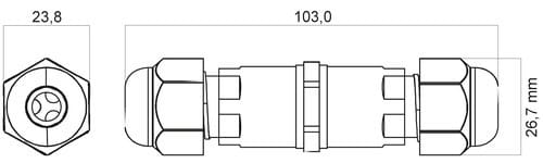 ** Caratteristiche Generali **Genere: MorsettoNr. Poli: 3n. terminali: 3** Caratteristiche Elettriche **Corrente max: 16ATensione max: 450V** Caratteristiche Meccaniche **Materiale Corpo: PPTipo contatto: a viteTerminazione: ad avvitareMontaggio connettore: volanteSezione conduttori: 0.5-2.5mm²Diametro cavo min: 9mmDiametro cavo max: 12mmGrado di protezione: IP68** Caratteristiche Termiche **Temperatura di lavoro: -20/60°CScatola di giunzione a tre vie per realizzare giunzioni stagne di cavo elettrico fornita con due differenti anelli in gomma di tenuta cavo per diversi diametri di cavo:5-9mm9-12mm- Orientamento del connettore: dritto- Adatto per conduttori con sezione da 0,5 a 2,5 mm²- Estremamente affidabile- Riutilizzabile e riaccessibile