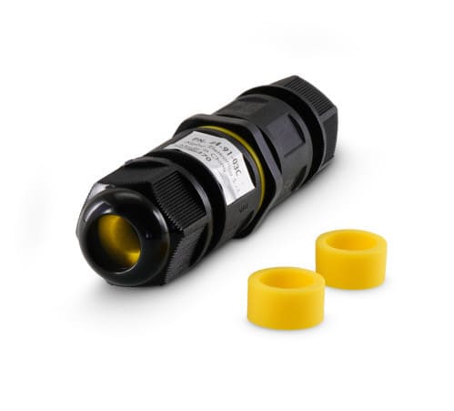 ** Caratteristiche Generali ** Genere: Morsetto Nr. Poli: 3 ** Caratteristiche Elettriche ** Corrente max: 24A Tensione max: 450V ** Caratteristiche Meccaniche ** Materiale Corpo: PA66 Tipo contatto: a pressione Terminazione: a pressione Montaggio connettore: volante Sezione conduttori: 0.5-2.5mm² Diametro cavo min: 4mm Diametro cavo max: 8mm Grado di protezione: IP68 ** Caratteristiche Termiche ** Temperatura di lavoro: 105°C Adattatori inclusi per cavi di diametro 4-8mm e 6-11mm