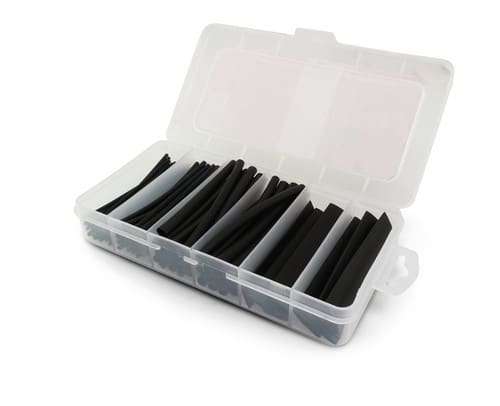 La confezione contiene: D/d (mm) - pz 1,6/0,8 - 30 2,4/1,2 - 30 4,8/2,4 - 20 6,4/3,2 - 10 9,5/4,8 - 6 12,7/6,4 - 4 Totale: 100 pezzi ** Caratteristiche ** Per impiego generale Poliolefina a basso spessore Rapporto di restringimento 2:1 Priva di alogeni Ritardante la fiamma (VW-1) Ottima flessibilità ** Caratteristiche ** Restringimento: 2:1 ** Applicazioni ** Isolamento elettrico fino a 600V Protezione da abrasione e da corrosione di cavi e conduttori elettrici Ricostruzione dell’isolamento dei cavi bassa tensione Identificazione di cavi e conduttori elettrici
