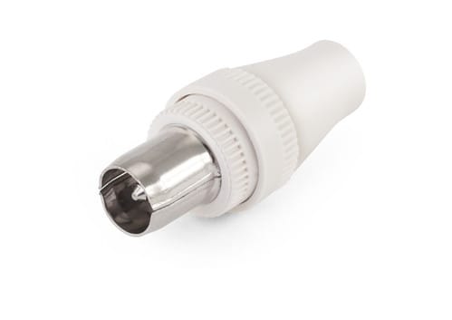** Caratteristiche Generali **Genere: SpinaTipo Connettore: Coassiale TVColore: BiancoOrientamento: DrittoQualità: HQ** Caratteristiche Elettriche **Impedenza: 75ohm** Caratteristiche Meccaniche **Materiale Corpo: PlasticoTipo contatto: a viteMontaggio connettore: volante