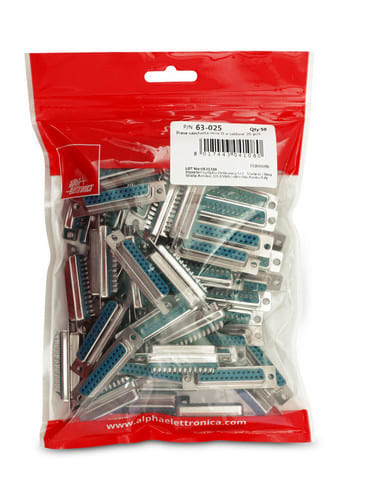 ** Caratteristiche Generali **Genere: PresaTipo Connettore: D SubNr. Poli: 25** Caratteristiche Elettriche **Corrente max: 1ATensione max: 50V** Caratteristiche Meccaniche **Materiale Corpo: AcciaioMateriale Isolamento: PoliestereMateriale Contatto: OttoneTipo contatto: a saldareMontaggio connettore: volante