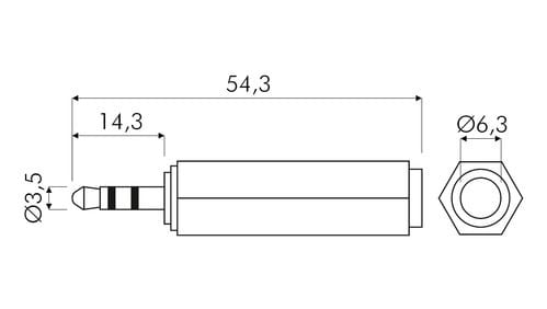 ** Caratteristiche Generali **Genere: AdattatoreOrientamento: DrittoTipo Connettore A: JackGenere A: SpinaTipo Connettore A: Spina Jack ø3.5mm StereoTipo Connettore B: JackGenere B: PresaTipo Connettore B: Presa Jack ø6.3mm Stereo** Caratteristiche Elettriche **Schermatura: si** Caratteristiche Meccaniche **Materiale Corpo: PVCMateriale Contatto: Ottone nichelatoLunghezza Cavetto: 2cm
