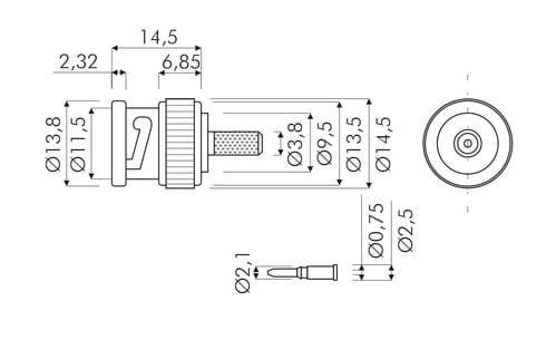 ** Caratteristiche Generali **Genere: SpinaTipo Connettore: BNCFoglio tecnico: UG260Orientamento: DrittoQualità: Qualità StandardAdatto per cavo RG: RG-59/U RG62/U RG210/U** Caratteristiche Elettriche **Impedenza: 75ohm** Caratteristiche Meccaniche **Materiale Corpo: Ottone nichelatoTipo contatto: a saldare o crimpareTerminazione: a crimpareMontaggio connettore: volanteDiametro cavo nom: 6mm