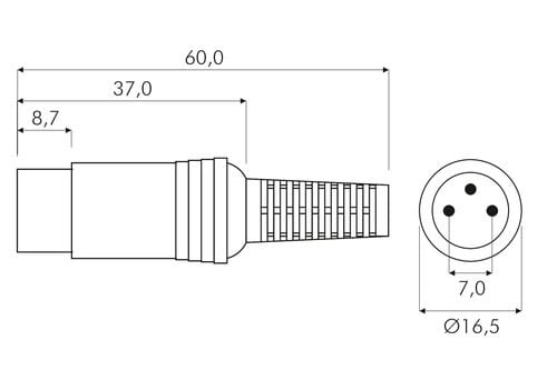 ** Caratteristiche Generali ** Genere: Spina Tipo Connettore: DIN Norma di riferimento: DIN 45329 Colore: Nero Orientamento: Dritto Nr. Poli: 7 Adatto per: 10-1 ** Caratteristiche Meccaniche ** Materiale Corpo: termoplastico Tipo contatto: a saldare Montaggio connettore: volante Diametro cavo max: 6mm