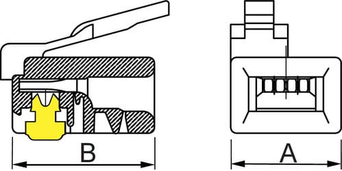 ** Caratteristiche Generali **Genere: SpinaCategoria: CAT.3Colore: TrasparenteNr. Poli: 4Configurazione Poli: 6P4CAdatto per tipo conduttore: TrefoloSezione AWG: AWG24-26Tipo Clip: DEC/Digitale** Caratteristiche Elettriche **Corrente max: 1.5ASchermatura: no** Caratteristiche Meccaniche **Materiale Corpo: PC UL 94V-2Materiale Contatto: Bronzo fosforosoPlaccatura contatti: Contatti doratiInserti: 0Placcatura: 3µmFormato Corpo: StandardDim. A: 9.6mmDim. B: 12.32mm