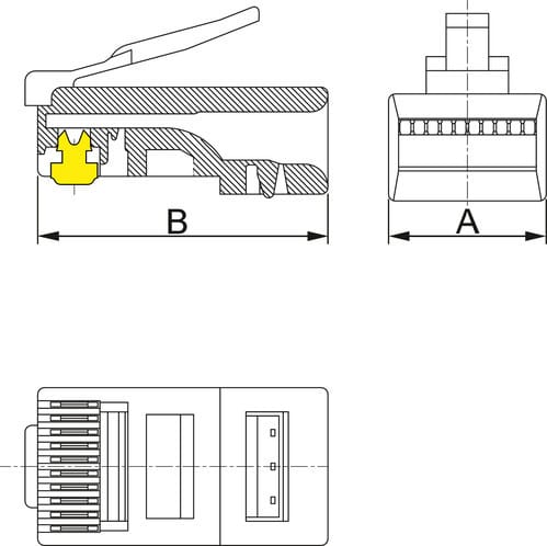 ** Caratteristiche Generali **Genere: SpinaCategoria: CAT.3Colore: TrasparenteNr. Poli: 10Configurazione Poli: 10P10CAdatto per tipo conduttore: TrefoloSezione AWG: AWG24-26Tipo Clip: Standard** Caratteristiche Elettriche **Corrente max: 1.5ASchermatura: no** Caratteristiche Meccaniche **Materiale Corpo: PC UL 94V-2Materiale Contatto: Bronzo fosforosoPlaccatura contatti: Contatti doratiInserti: 0Placcatura: 3µmFormato Corpo: StandardDim. A: 11.68mmDim. B: 21.48mm