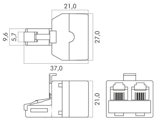 ** Caratteristiche Generali **Genere: AdattatoreTipo Connettore A: Modulare 6P6CGenere A: SpinaTipo Connettore A: Spina Modulare 6P6CTipo Connettore B: Modulare 6P6CGenere B: PresaTipo Connettore B: 2x Presa Modulare 6P6C** Caratteristiche Meccaniche **Materiale Corpo: PolicarbonatoMateriale Contatto: Bronzo fosforoso